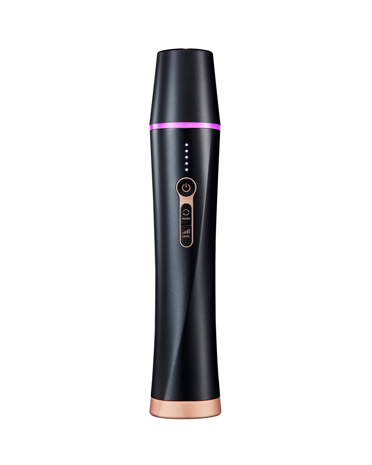 Press level button to cycle through 5 intensity levels, with audio and LED confirmation.